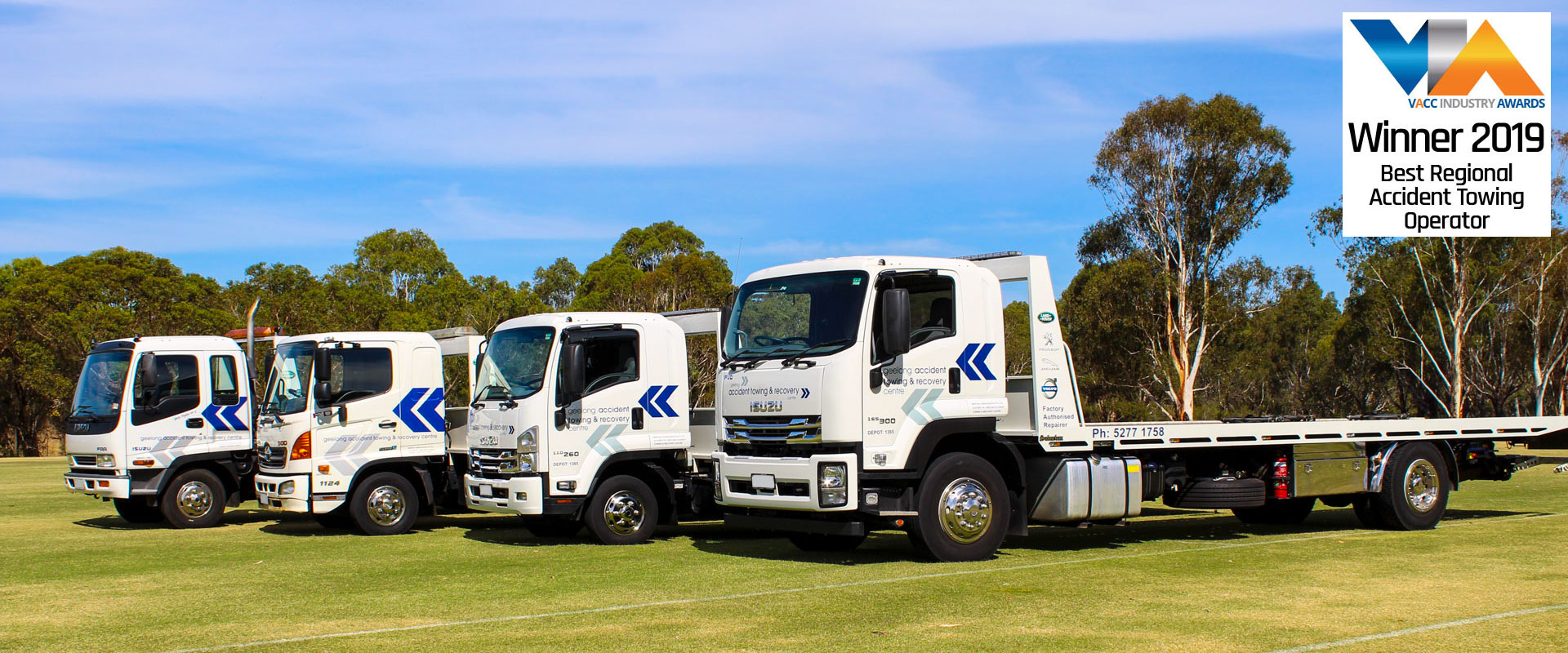 Our companies are recognised through VicRoads as licenced essential service providers and have continuously invested in innovative technology and quality control processes, focusing on the Philosophy where “Absolute Quality & Customer Service” applies. These core principles have earned the respect of an extremely demanding clientele and has allowed us to be the largest professional Accident Towing Organisation throughout Geelong and Regional Victoria with unparalleled results. Our endless drive for exceptional service was recognised winning the VACC state award for Best Regional Accident Towing Operator in 2019.